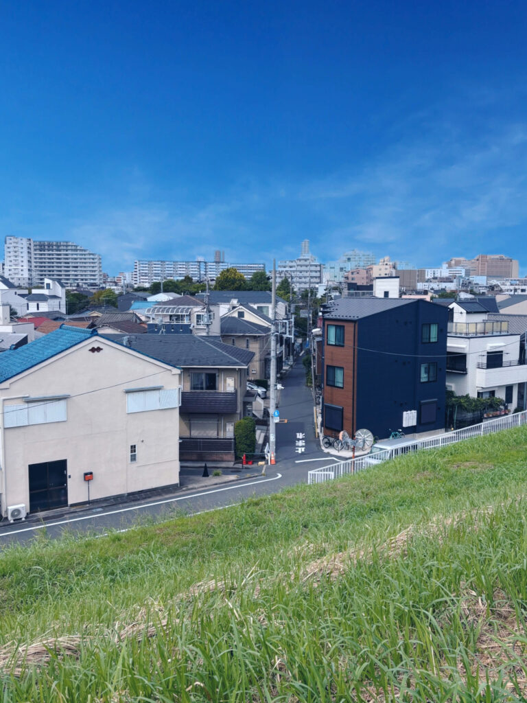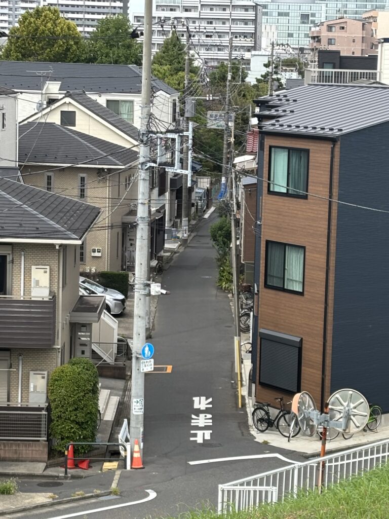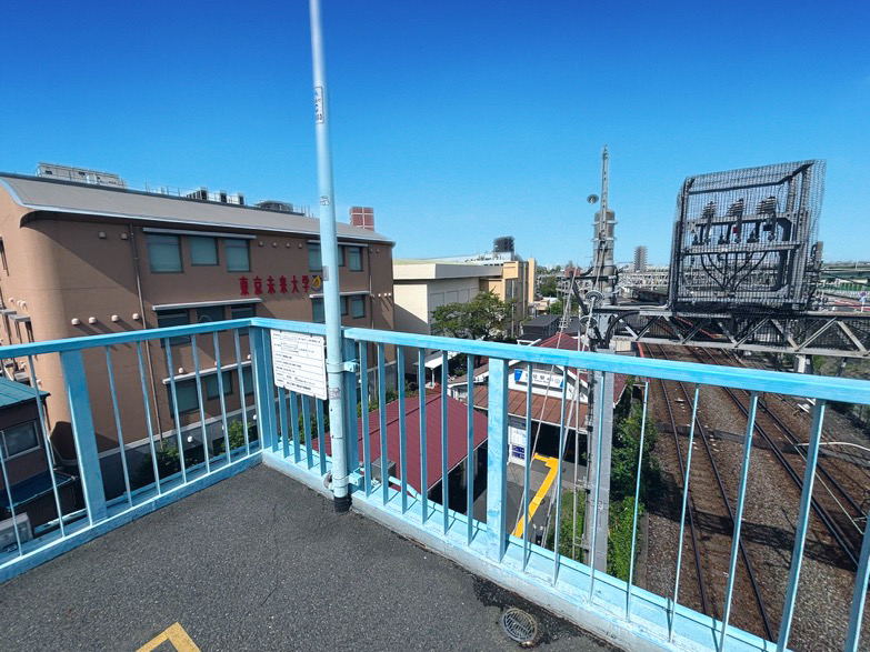 歩道橋から桜中学(旧足立二中)の体育館跡地に建つ東京未来大学の新校舎
