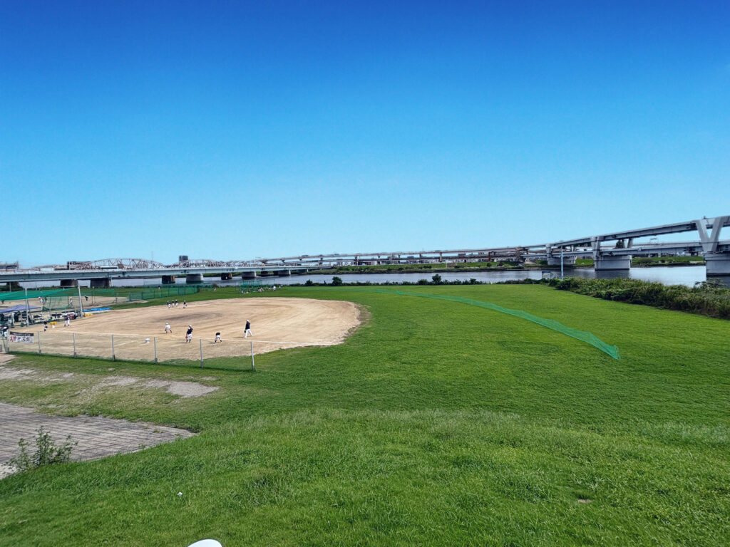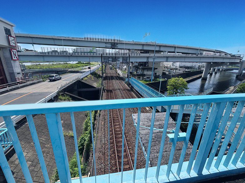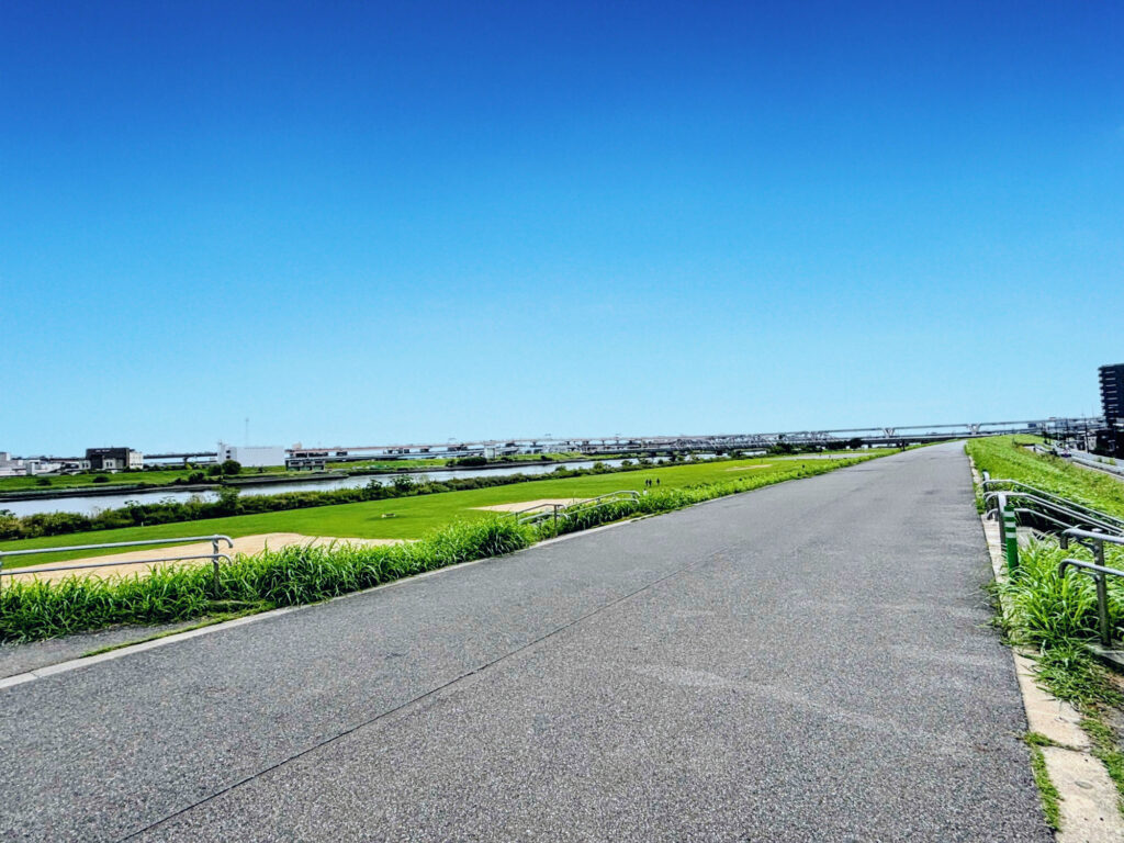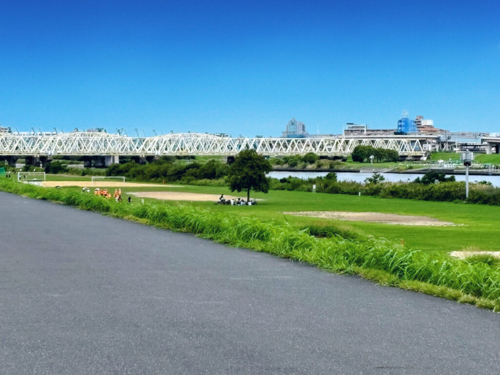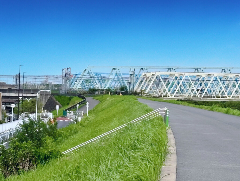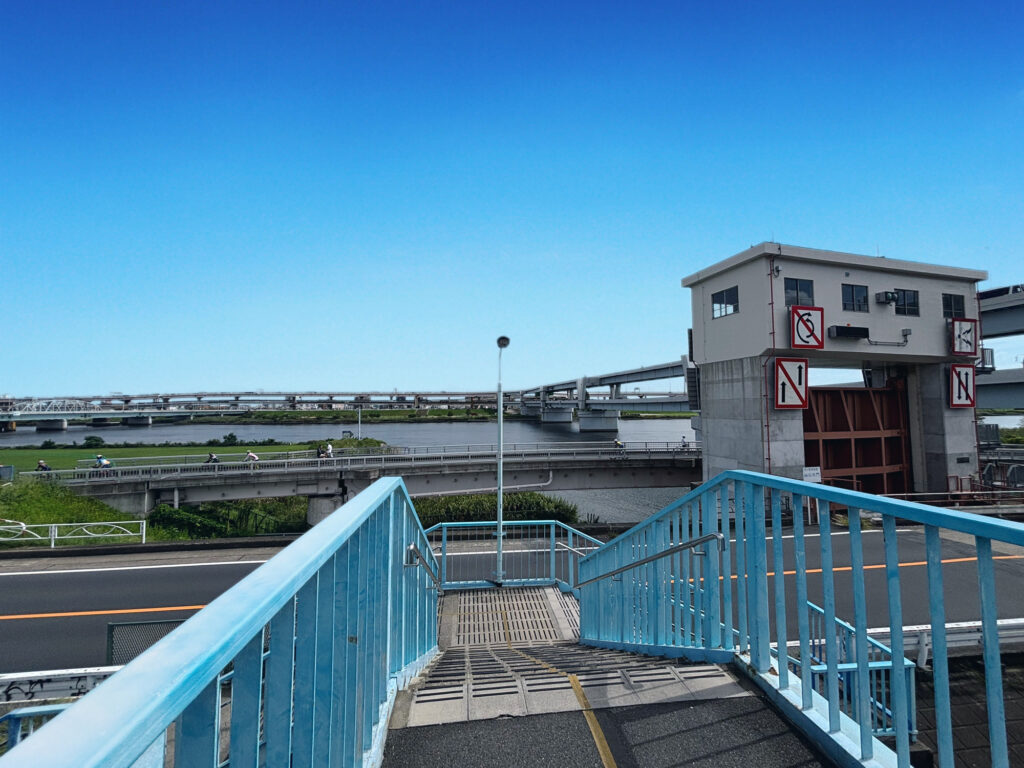 歩道橋から荒川が目の前に見えます
